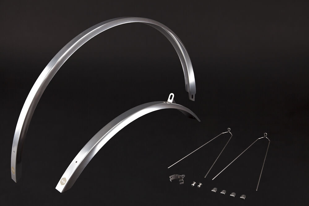 These light weight & elegant fenders are aluminum made w/ 4mm stainless stays. 45mm width fits up to 40C tires. Lengths F: 640mm / R: 1125mm