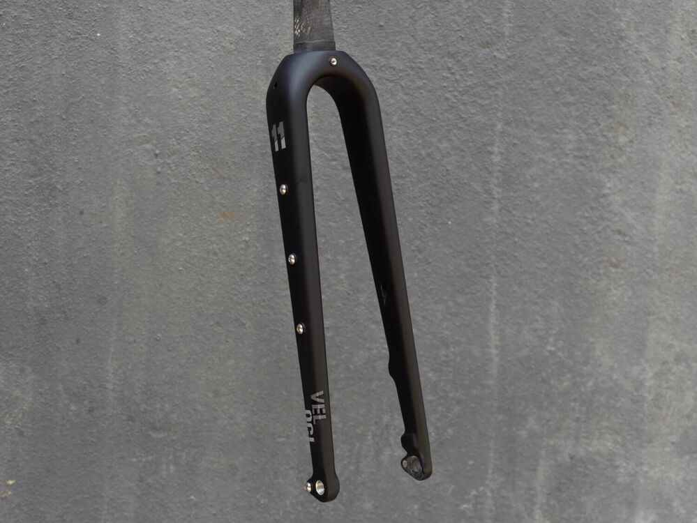 Upgrade your ride with the VELOCI No.11 Carbon Fork, designed for custom-built gravel bikes and bikepacking adventures. Engineered for lightness, speed, and functionality, it features a flat mount disc brake standard, fender mounts, triple cage mounts, and an M5 threaded thru-axle, capable of installing racks. With massive tire clearance, it ensures superior handling and comfort, making it the perfect choice for gravel terrains.